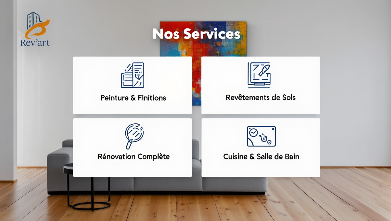 Rev’art propose des rénovations élégantes et sur-mesure : peinture haut de gamme, revêtements soignés, optimisation d’espace et rénovation complète d’appartements. Notre engagement : précision, esthétique et tranquillité d’esprit.